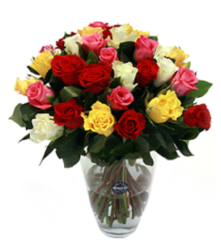 Um lindo bouquet composto por Rosas de multiplas rosas e folhagem.